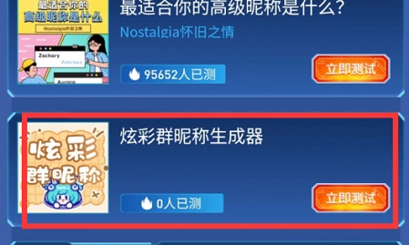 3、等待用户进入页面,用户就能选择炫彩群昵称生成器,点击立即测试。