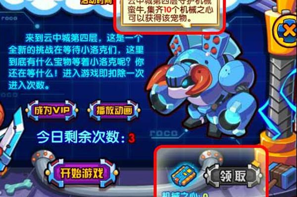 2、参加云中城第四层机械城堡活动获得机械圆仔。