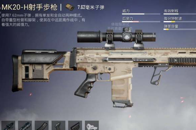 1、这个武器有着全自动以及单发两种射击模式,威力方面比mk14要高。
